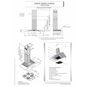 As dimensoes do produto podem sofrer uma pequena variacao de largura do vidro, de ate 7 sete milimetros. Por este motivo, quando a coifa for instalada de forma embutida em nichos, o fabricante recomenda que seja considerada uma folga de pelo menos 1 cm em cada lado