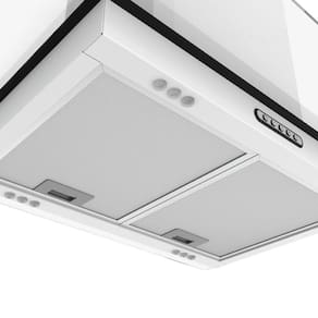 As dimensões do produto podem sofrer uma pequena variação de largura do vidro, de até 7 sete milímetros. Por este motivo, quando a coifa for instalada de forma embutida em nichos, o fabricante recomenda que seja considerada uma folga de pelo menos 1 cm em cada lado