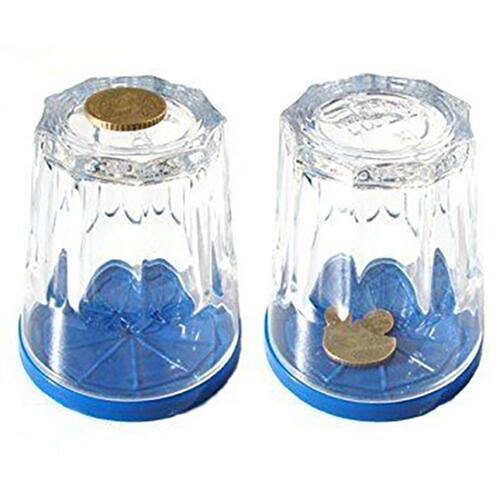 Efeito: O Mágico pega um moeda e faz desaparecer. A seguir o mágico pega um pequeno suporte azul como mostrado acima e coloca um copo virado para baixo, tampando a boca do copo. Com um passe mágico a moeda atravessa o copo. Conteúdo não é recomendado para crianças. A loja oferece a garantia 100% satisfeito Tamanho 1 x 5 x 5 cm