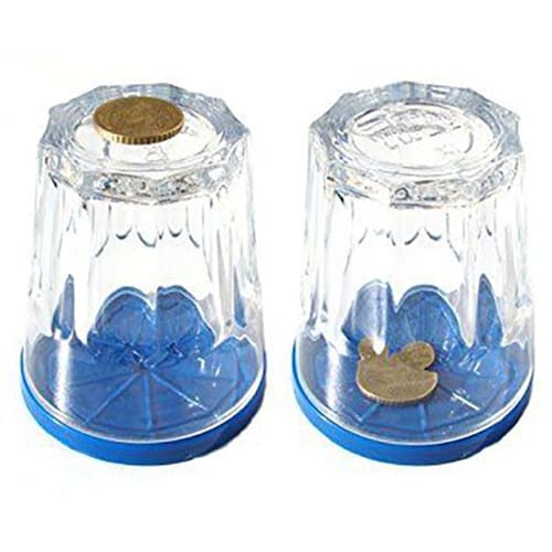 Efeito: O Mágico pega um moeda e faz desaparecer. A seguir o mágico pega um pequeno suporte azul como mostrado acima e coloca um copo virado para baixo, tampando a boca do copo. Com um passe mágico a moeda atravessa o copo. Conteúdo não é recomendado para crianças. A loja oferece a garantia 100% satisfeito Tamanho 1 x 5 x 5 cm