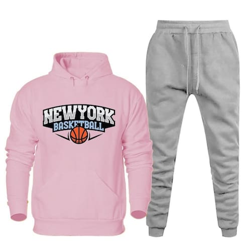 Cojunto de Moletom Masculino Plus Size Estampa New York Blusa Com Capuz e Calça Cordao Ajustavel - Rosa - G5