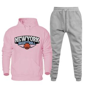 Cojunto de Moletom Masculino Plus Size Estampa New York Blusa Com Capuz e Calça Cordao Ajustavel - Rosa - G1