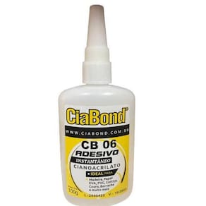 Cola Adesivo Instantâneo Cb 06 Ciabond 100g Anti Entupimento Adesivo Instantâneo CB 06 100g Ciabond, bico com pino de metal que evita o entupimento.O adesivo instantâneo CB 06, da CIABOND, faz parte da linha Cianoacrilato, que adere em segundos á temperatura ambiente, superfícies lisas e porosas, aderindo a maioria dos substratos, tais como: - Borracha- Madeira- Cerâmica- Vidro- Cortiça- Metais- Couro- Termoplástico Modo de uso:Limpar as superfícies a serem aderidas com um desengraxante apropriado, eliminando resíduos, poeira e oleosidades. Aplicar o adesivo em apenas uma das partes. Características: - Composição: Étil Cianoacrilato - Peso Líquido: 100g - Fabricante Ciabond A CiaBondFabricante de Adesivos e Selantes de Alta Tecnologia. No mercado desde 1º de Julho de 2004 com produção própria, a Ciabond é uma Indústria 100% Brasileira. Atendemos todo o mercado industrial e de consumo, oferecendo produtos de altíssima qualidade para todo o país.