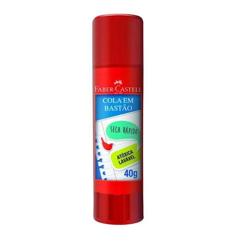 A cola bastão da Faber-Castell cola papéis, fotos e selos; Sua fórmula exclusiva proporciona a secagem rápida, é atóxica e lavável. Marca: Faber-Castell; Modelo com 40 gramas.
