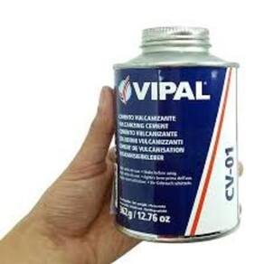 A cola cimento ref.:cv-05 de 500ml da vipal, é utilizados em pneus e câmaras, eles possuem resinas especiais que facilitam a aderência, além de aceleradores que asseguram a vulcanização dos manchões e reparos a frio.