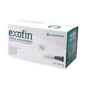 Modo de uso: Aplique o adesivo exofin sobre a incisão limpa e seca, espalhando-o com cuidado para garantir cobertura uniforme. Aguarde até que seque completamente. Em seguida, aplique as tiras steri-strip kelogel sobre a área tratada para reforçar o fechamento.