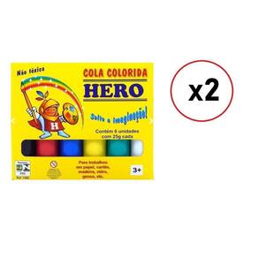Cola Colorida 6 Cores Tinta Escolar Lavável kit com 2un de 6 cores Desenvolvida para trabalhos escolares ,artesanais e aplicações artísticas Fabricado por: KIT / HERO Ideal para ser Utilizado em material como papel, tela, madeira, couro, cartolina, vidro, porcelana, fórmica, entre outros. Caixa com 6 cores: Amarelo, Vermelho, Verde, Azul, Preto, Branco Marca: Não Informado