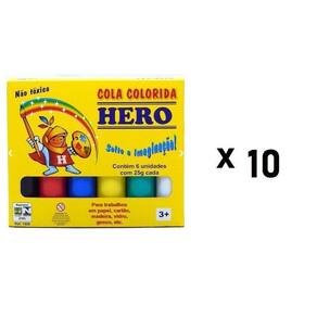 Cola Colorida 6 Cores Tinta Escolar Lavável kit com 10un de caixas com de 6 cores Desenvolvida para trabalhos escolares ,artesanais e aplicações artísticas Fabricado por: KIT / HERO Ideal para ser Utilizado em material como papel, tela, madeira, couro, cartolina, vidro, porcelana, fórmica, entre outros. Caixa com 6 cores: Amarelo, Vermelho, Verde, Azul, Preto, Branco Marca: Não Informado