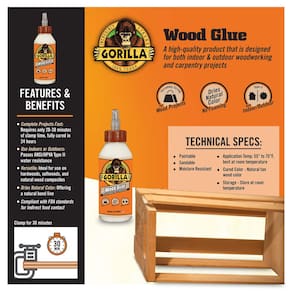 - Projetos completos rápidos: requer apenas 20 a 30 minutos de tempo de fixação, totalmente curado em 24 horas. Rapidamente cria uma ligação incrivelmente forte para projetos de madeira.