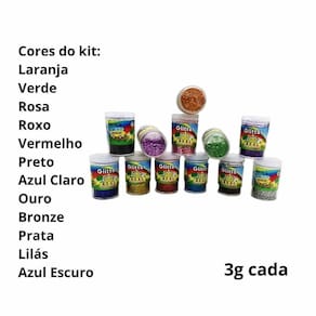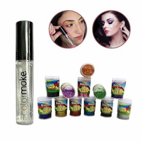 Cola gliter 12 cor maquiage festa fantasia carnaval Cola para glitter líquida 6ml incolor maquiagem artistica e glitter cores . Cola e glitter, para fazer aquele make incrível. A cola tem fórmula leve e incolor desenvolvida para proporcionar brilho intenso, longa duração e secagem rápida, sem causar o indesejado efeito craquelado. Isso permite que você alcance um resultado surpreendente em sua make, fácil aplicação, após aplicação use glitters para dar brilho e beleza em sua maquiagem. O kit contém: 1 cola de 6ml. 12 potes de glitter 3g cada cores . Modo de uso Com auxílio do aplicador, coloque uma pequena quantidade do fixador sobre a ele, deposite o glitter e espere secar. Precauções: não ingerir, manter fora do alcance de crianças, não aplicar sobre a pele irritada ou lesionada. Ao sinal de qualquer irritação suspender o uso do produto. Como remover Demaquilante. Marca: Não Informado