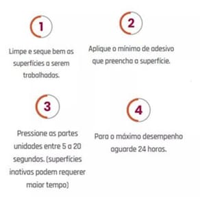 Viscosidade alta; Adesivo reposicionável; Não escorre; Materiais porosos ou absorventes; Pino metálico - não entope; Rápido desempenho de cura.