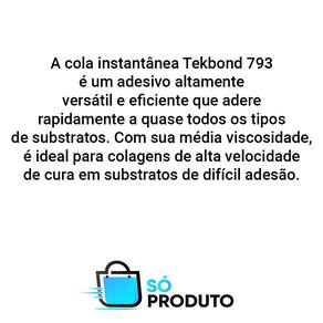Em resumo, a cola instantânea Tek Bond 793 de 100g é uma excelente escolha para colagens rápidas e eficientes em diversos tipos de substratos. Com sua alta resistência ao cisalhamento, preenchimento de folgas de até 0,10mm e facilidade de aplicação, este adesivo é uma solução prática e eficiente para o setor moveleiro e industrial.