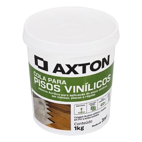 Resumo das Caracteristicas do Produto: - Cola Profissional para Piso Vinilico - Base de Agua - Indicada para areas internas - Aplicacao em chao, escada e piso - Tonalidade amarela - Conteudo de 1 kg - Tipo de Colagem: Fixacao - Rendimento: 3 m2 - Tempo de Secagem: 4 horas - Nao permite pintura apos a aplicacao - Marca: Axton." Marca: Não Informado