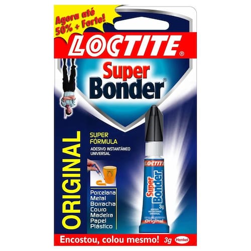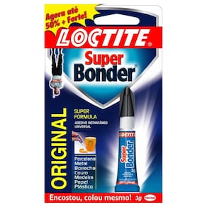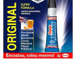 Adesivo instantâneo, monocomponente; Adere rapidamente a vários tipos de materiais porosos e não porosos como: porcelana, madeira, papel, couro, metal, plástico*, cerâmica, etc.