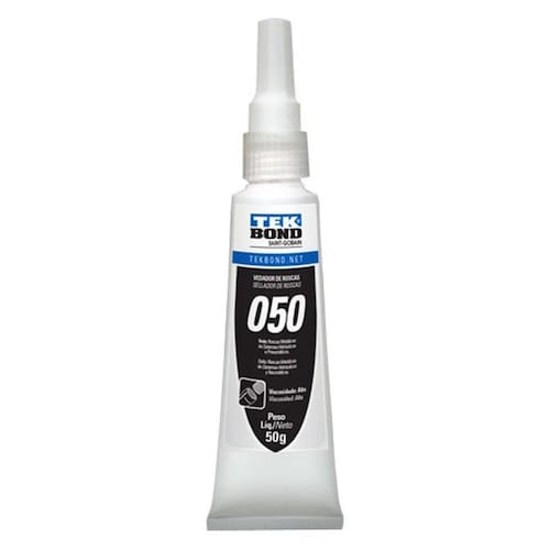 Cola Veda Rosca Tek Bond 050 50gr Cola Veda Rosca Tek050 P/ Roscas E Conectores 50gr O adesivo Tekbond 050 é um vedante químico anaeróbico, de alta viscosidade, baixa resistência à desmontagem e alta resistência à pressão. É recomendado principalmente para vedação de tubulações metálicas cônicas e conexões hidráulicas e pneumáticas até 2 polegadas. Não polui os sistemas e pode ser desmontado com ferramentas manuais simples. CARACTERÍSTICAS:É um adesivo anaeróbico monocomponente, uma vez aplicado evita a corrosão e impede vazamentos entre as conexões metálicas. MODO DE USO:1. Para um melhor desempenho, as superfícies devem ser limpas, isentas de oleosidade e sujeira.2. Para materiais inativos como aço inox, alumínio, ferro fundido e zamac recomendamos a utilização do Ativador T: acelerador de cura para os adesivos anaeróbicos (ativa e limpa superfícies metálicas ou inertes).3. Aplicar o produto no local ao qual se deseja unir espalhando-o uniformemente.4. Monte as peças e aperte os encaixes até que o alinhamento apropriado seja obtido.5. Os encaixes corretamente apertados selarão imediatamente a baixas pressões. As desmontagens das peças, como por exemplo, em tubulações podem ser feitas com ferramentas manuais. As peças podem ser reutilizadas, removendo os resíduos com uma escova apropriada e reaplicando o vedador no local desejado. PRECAUÇÕES: Manter fora do alcance das crianças. Manter em local fresco a temperatura de 15 a 25C, longe de metais e produtos químicos. DADOS TÉCNICOS:Viscosidade (cP): 250.000 a 800.000Temperatura de Trabalho (C): - 60 a 204Preenchimento de Folgas (mm): 0,50Cura inicial: = 120 minutosCura total: 24 horasResistência à pressão N/mm (PSI): = 35 (= 5.000) Ean: 7898472251067