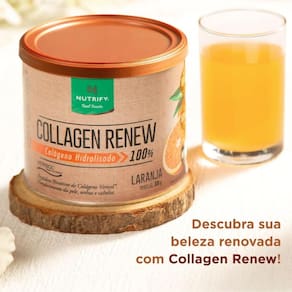 Collagen Renew Nutrify é um suplemento alimentar em pó formulado com peptídeos bioativos de colágeno Verisol , além de vitaminas e minerais que atuam em sinergia com o colágeno. Indicado para adultos a partir dos 19 anos que desejam cuidar da saúde da pele e promover a beleza natural. Um bom momento para ingeri-lo pode ser antes de dormir, quando seu corpo está em repouso e poderá absorver os nutrientes de maneira mais tranquila e eficiente ou em jejum pela manhã. - Como tomar Adicione 10g 2 scoops em aproximadamente 200ml 1 copo de água. Misture até a total homogeneização. Beba imediatamente após o preparo. Recomenda-se o uso uma vez ao dia ou conforme orientação profissional. - Ingredientes Colágeno hidrolisado, peptídeos bioativos de colágeno hidrolisado com peso molecular médio 2kDa Verisol , mix de vitaminas e minerais ácido ascórbico, acetato de DL-alfatocoferila, sulfato de zinco monoidratado, acetato de retinol, picolinato de cromo, selenito de sódio, D-biotina e colecalciferol , acidulante ácido cítrico, aromatizante, edulcorante glicosídeos de esteviol de Stevia rebaudiana Bertoni e corante beta-caroteno sintético.