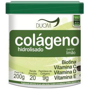 Colágeno hidrolisado peptídeos e vitaminas sabor limão duom - descrição - O colágeno hidrolisado da duom possui 9 gramas de peptídeos por porção além de ser enriquecido com vitamina c e chá verde. Pode ser diluído em água ou bebida de sua preferência. É um suplemento alimentar de colágeno hidrolisado em pó com vitamina c. Fonte de proteínas. As proteínas auxiliam na formação dos músculos e ossos e beneficiam a pele, as unhas e os cabelos. - benefícios - - 9 gramas de peptídeos por dose; - as proteínas auxiliam na formação dos músculos e ossos; - a biotina vitamina b7 contribui para a manutenção do cabelo e da pele; - a vitamina c e vitamina e são antioxidantes que auxiliam na proteção dos danos causados pelos radicais livres; - a vitamina c auxilia no funcionamento do sistema imune e na formação do colágeno; - a vitamina d auxilia na absorção do cálcio e fósforo. - sugestão de uso - Dissolver 1 colher de sopa rasa 10g do colágeno duom em 200ml de água. Misture até completa dissolução e consuma logo em seguida. - tabela nutricional - Informação nutricional - em anexo nas imagens - composição - Colágeno hidrolisado, chá verde solúvel, vitamina c, vitamina e, biotina e vitamina d. Aroma sintético de limão, acidulante ácido cítrico, antiumectante dióxido de silício e edulcorante artificial sucralose. - recomendações - Conserve ao abrigo da luz, calor e umidade excessiva. Mantenha o frasco bem fechado. Após aberto consumir em até 60 dias. Consumir preferencialmente sob orientação de médico ou nutricionista. Este produto não é indicado para gestantes, nutrizes e crianças. Este produto não é um . Não exceder a recomendação diária de consumo indicada na embalagem. Mantenha fora do alcance de crianças. Produto não recomendado a menores de 10 anos. - dados técnicos - Marca - duom. Fabricante - mm laboratório duom eirele. Conteúdo líquido por frasco - 200g. Rendimento por frasco - 20 doses. Peso líquido por frasco - 200g. Peso bruto por frasco - 300g. Código de barras ean - 7898958836597. Registro anvisa - produto dispensado de registro de acordo com a rdc nº240/2018. Dimensões do produto - largura: 9,5 cm; altura: 11 cm; comprimento: 9,5 cm. Dimensões da embalagem/pacote - largura: 13 cm; altura: 10 cm; comprimento: 16 cm. - itens do anúncio - 1 unidades do produto: Colágeno hidrolisado peptídeos e vitaminas sabor limão duom Total - 200g cada frasco. Ean: 7898958836597