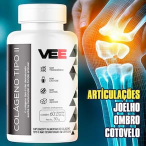💪 Colágeno Tipo II VEE Suplemento premium que auxilia na manutenção da saúde das articulações, ideal para quem sente dores, rigidez ou desconforto ao se movimentar.
