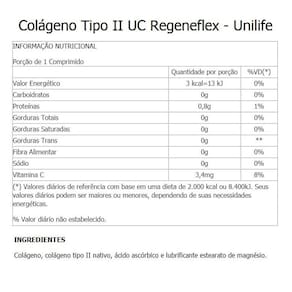 Colágeno, colágeno tipo II nativo, ácido ascórbico e lubrificante estearato de magnésio.