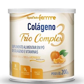 Ingredientes Tangerina: colágeno hidrolisado, colágeno hidrolisado verisol, colágeno tipo ii, vitamina c, bisglicinato de zinco, vitamina e, vitamina b5, bisglicinato de cobre, vitamina b2, vitamina b6, vitamina a, vitamina b7 e vitamina b9. Acidulante: ácido cítrico. Edulcorante: sucralose. Aromatizantes: aroma natural de tangerina idêntico ao natural. Corante: corante vermelho bordeaux. Antiumectante: fosfato tricálcico. Contém glúten.