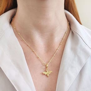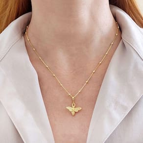 A VL traz à você uma linha de joias encantadoras, inspiradas nas abelhas. Este colar foi elaborado com um pingente Charm de abelha média junto a uma corrente veneziana com pequenas esferas, que dão toque de refinamento à peça.