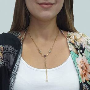 O Colar Armazem RR Bijoux gravatinha cristais coloridos dourado é um acessório moderno e despojado, que traz personalidade e atitude para o look.