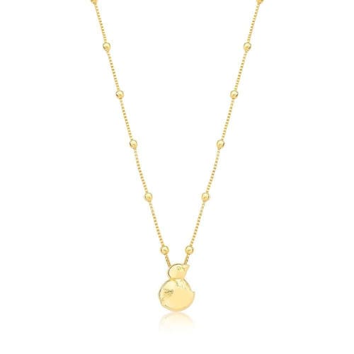 Joias desenvolvidas com os principais símbolos da Agricultura e Pecuária brasileira, unindo sofisticação e design, criando um mix irreverente de pérolas, zircônias, texturas, couro e correntes. O Colar Avicultura foi elaborado com detalhes minimalistas de um pintinho dentro do ovo, com corrente veneziana detalhada com bolinhas e Revestimento em Ouro. Uma peça versátil, com regulagens que permitem ser usadas por criança e adulto.