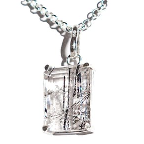 Colar baguette turmalina preta incrustada no cristal com garra na prata: deslumbrante peça que adiciona brilho e elegância a qualquer roupa.