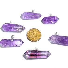 Pingente Bi Terminado Pedra Ametista Natural Presilha Pino Dourado, Pedra Ametista Natural de garimpo com lapidação artesanal montado com pino e presilha em Prateado, ideal para colar e pulseiras, ja vai montado.