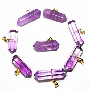 Pingente Bi Terminado Pedra Ametista Natural Presilha Pino Dourado, Pedra Ametista Natural de garimpo com lapidação artesanal montado com pino e presilha em Dourado, ideal para colar e pulseiras, ja vai montado.