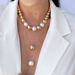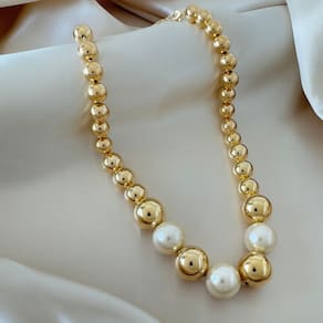 Descubra a beleza dinâmica do nosso colar com bolas lisas degradê e pérolas grandes, uma peça que combina harmoniosamente modernidade e clássico atemporal. As bolas lisas degradê, cuidadosamente selecionadas, criam um efeito visual impressionante que transita suavemente entre tonalidades sutis, adicionando profundidade e interesse ao colar. As pérolas grandes, destacadas em pontos estratégicos, adicionam um toque de sofisticação e elegância, capturando a luz com seu brilho natural. O design é complementado por uma corrente delicada e ajustável, garantindo conforto ao usar e um ajuste perfeito para qualquer ocasião. Perfeito para elevar seu estilo cotidiano ou para complementar um look especial, este colar é uma escolha versátil que se adapta a diversos estilos pessoais. Seja para um evento formal ou para um encontro casual, a combinação única de bolas degradê e pérolas grandes faz deste colar um verdadeiro destaque. Celebre a sua beleza única com o nosso colar com bolas lisas degradê e pérolas grandes, uma expressão de elegância e charme que certamente cativará olhares.