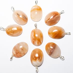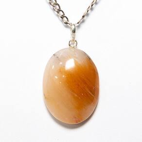 Pingente Cabochão Oval pedra Aragonita Raio Laranja Natural Montagem com Pino e Presilha de Prata 950 ( PRATA DE LEI)