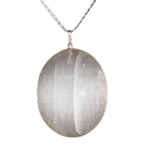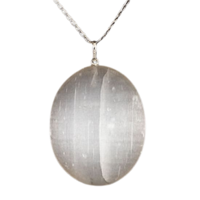 Pingente Cabochão Oval Grande Selenita, castoação Prata 950 PRATA DE LEI Pino e presilha ,pedra com origem de garimpo com lapidação e montagem feitas manualmente