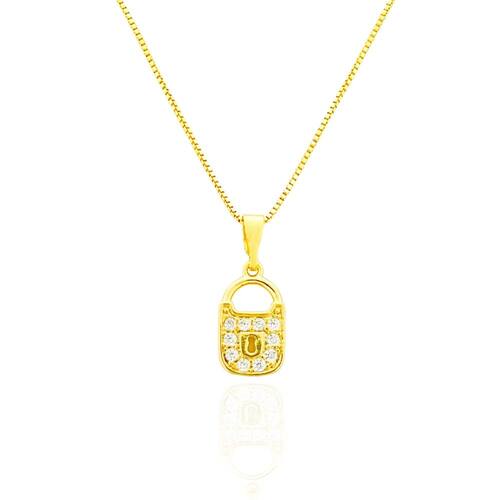 Dados técnicos: Semijóia banhada a ouro Comprimento: 45cm mais 5cm de extensor Tamanho do pingente: 1,3cm x 0,9mm Marca: Lys Lazuli Garantia: 2 anos (Esta garantia cobre apenas o banho. Quebra, amassado, arranhado ou mau uso não estão cobertos por esta garantia) Peça antialérgica Classe da peça: Semijoia