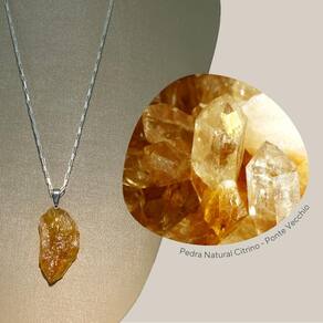 Colar Cadeado Prata 925 Citrino Bruto - Ponte Vecchio Joias