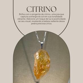 O pingente de citrino brilha com a luminosidade do sol capturada em cristal, apresentando uma forma orgânica que realça a riqueza natural da pedra. Sua montagem simples destaca a beleza inata e a cor vibrante da gema.