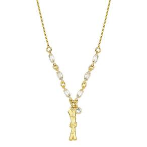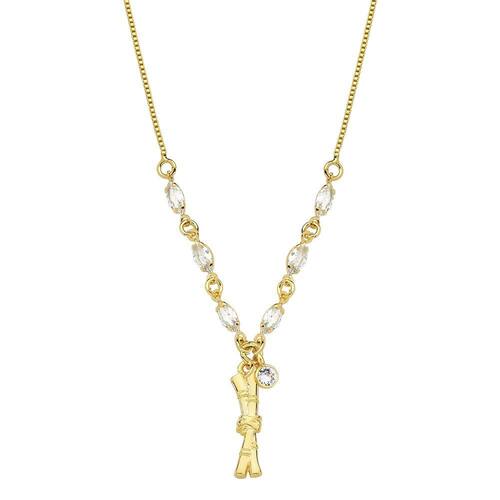 Como parte de nossa coleção, apresentamos o Colar Cana de Açúcar de Zircônias Navetes e Revestimento em Ouro possui design elegante e sofisticado, detalhes minimalistas de um feixe de Cana e um ponto de luz. Uma verdadeira joia!
