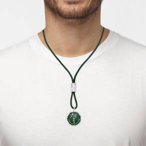 Como parte de nossa coleção, apresentamos o colar Cana-de-açúcar, desenvolvido em Paracord verde-oliva, composto por medalha esmaltada e e uma Tora com textura da madeira, ambos com Revestimento em Prata. O colar possui ponteiras metálicas, seu fechamento se dá por nó.