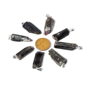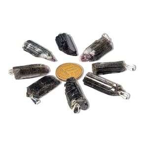 Pedra: Turmalina Verde Natural Cor da Pedra: Verde vibrante (foto ilustrativa) Corte: Natural (mantendo a forma bruta da pedra) Claridade: Brilhosa e semi-transparente Medida da Pedra: Aproximadamente 14 a 24 mm (variação conforme estoque) Peso Total da Pedra: Aproximadamente 10 quilates Montagem: Pino e perinha em metal prateado