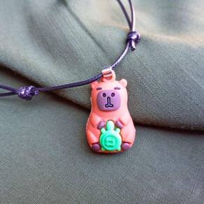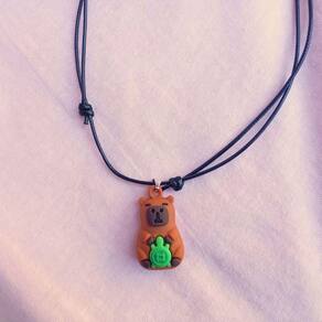 Colar com Pingente de Capivara Praticidade e Fofura para Todas as Idades Faça já o seu pedido Este colar encantador conta com um pingente de capivara super fofo, feito de material emborrachado, que garante um visual leve e divertido. O cordão é regulável, feito de cordão coreano, proporcionando conforto e ajustando-se facilmente ao tamanho desejado. Ideal para qualquer faixa etária, o colar é uma escolha prática e versátil para quem busca um acessório único e descomplicado no dia a dia. Material : pingente de borracha , cordão coreano