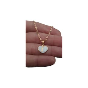 Colar feminino modelo Cartier com pingente Coração branco letra inicial H banhado em Ouro 18k. Delicado e cheio de significado, este colar apresenta um pingente em forma de coração, personalizado com a letra inicial. O colar perfeito para quem deseja manter alguém especial sempre perto do coração. Ideal para presentear ou para adicionar um toque pessoal ao seu estilo diário. Este colar banhado a Ouro é mais que um acessório; é uma declaração de amor. Especificações: Colar Cartier com pingente Coração Branco letra inicia H banhados em Ouro 18k. Tamanho do colar: 45 cm. Peso do colar: 3 g. Espessura do colar: 2 mm. Fecho do colar: lagosta. Antialérgico. Tamanho do pingente: 1,4 x 1,2 cm. Pingente banhado a Ouro com aplique de resina branca. Instruções de uso e conservação: Nossas peças são de excelente qualidade. Para manter o brilho e a beleza da joia; por favor siga estas dicas: Evite o uso da joia durante o banho, ter atenção ao aplique de cremes ou perfumes sobre a joia, evitar banho de piscina e mar com a joia; limpe-as sempre com flanela adequada, guarde-as separadamente. Com estes cuidados básicos a joia manterá sempre a originalidade e qualidade. Acompanha linda caixinha de presentes. sobre defeitos de fabricação: 6 meses. Seguindo nossas orientações de uso no certificado de , a joia permanecerá conservada por longos anos ou até décadas Marca: Anaisa Semijoias