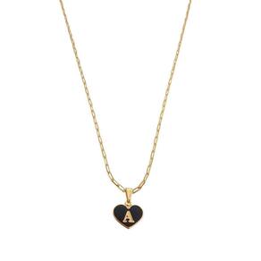 Colar feminino modelo Cartier com pingente Coração negro letra inicial A banhado em Ouro 18k. Delicado e cheio de significado, este colar apresenta um pingente em forma de coração, personalizado com a letra inicial. O colar perfeito para quem deseja manter alguém especial sempre perto do coração. Ideal para presentear ou para adicionar um toque pessoal ao seu estilo diário. Este colar banhado a Ouro é mais que um acessório; é uma declaração de amor. Especificações: Colar Cartier com pingente Coração Negro letra inicia A banhados em Ouro 18k. Tamanho do colar: 45 cm. Peso do colar: 3 g. Espessura do colar: 2 mm. Fecho do colar: lagosta. Antialérgico. Tamanho do pingente: 1,4 x 1,2 cm. Pingente banhado a Ouro com aplique de resina branca. Instruções de uso e conservação: Nossas peças são de excelente qualidade. Para manter o brilho e a beleza da joia; por favor siga estas dicas: Evite o uso da joia durante o banho, ter atenção ao aplique de cremes ou perfumes sobre a joia, evitar banho de piscina e mar com a joia; limpe-as sempre com flanela adequada, guarde-as separadamente. Com estes cuidados básicos a joia manterá sempre a originalidade e qualidade. Acompanha linda caixinha de presentes. sobre defeitos de fabricação: 6 meses. Seguindo nossas orientações de uso no certificado de , a joia permanecerá conservada por longos anos ou até décadas Marca: Anaisa Semijoias