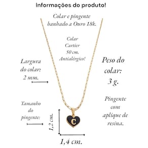 Colar feminino modelo Cartier com pingente Coração negro letra inicial C banhado em Ouro 18k. Delicado e cheio de significado, este colar apresenta um pingente em forma de coração, personalizado com a letra inicial. O colar perfeito para quem deseja manter alguém especial sempre perto do coração. Ideal para presentear ou para adicionar um toque pessoal ao seu estilo diário. Este colar banhado a Ouro é mais que um acessório; é uma declaração de amor. Especificações: Colar Cartier com pingente Coração Negro letra inicia C banhados em Ouro 18k. Tamanho do colar: 50 cm. Peso do colar: 3 g. Espessura do colar: 2 mm. Fecho do colar: lagosta. Antialérgico. Tamanho do pingente: 1,4 x 1,2 cm. Pingente banhado a Ouro com aplique de resina branca. Instruções de uso e conservação: Nossas peças são de excelente qualidade. Para manter o brilho e a beleza da joia; por favor siga estas dicas: Evite o uso da joia durante o banho, ter atenção ao aplique de cremes ou perfumes sobre a joia, evitar banho de piscina e mar com a joia; limpe-as sempre com flanela adequada, guarde-as separadamente. Com estes cuidados básicos a joia manterá sempre a originalidade e qualidade. Acompanha linda caixinha de presentes. sobre defeitos de fabricação: 6 meses. Seguindo nossas orientações de uso no certificado de , a joia permanecerá conservada por longos anos ou até décadas Marca: Anaisa Semijoias