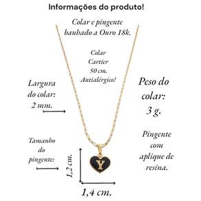 Colar feminino modelo Cartier com pingente Coração negro letra inicial Y banhado em Ouro 18k. Delicado e cheio de significado, este colar apresenta um pingente em forma de coração, personalizado com a letra inicial. O colar perfeito para quem deseja manter alguém especial sempre perto do coração. Ideal para presentear ou para adicionar um toque pessoal ao seu estilo diário. Este colar banhado a Ouro é mais que um acessório; é uma declaração de amor. Especificações: Colar Cartier com pingente Coração Negro letra inicia Y banhados em Ouro 18k. Tamanho do colar: 50 cm. Peso do colar: 3 g. Espessura do colar: 2 mm. Fecho do colar: lagosta. Antialérgico. Tamanho do pingente: 1,4 x 1,2 cm. Pingente banhado a Ouro com aplique de resina branca. Instruções de uso e conservação: Nossas peças são de excelente qualidade. Para manter o brilho e a beleza da joia; por favor siga estas dicas: Evite o uso da joia durante o banho, ter atenção ao aplique de cremes ou perfumes sobre a joia, evitar banho de piscina e mar com a joia; limpe-as sempre com flanela adequada, guarde-as separadamente. Com estes cuidados básicos a joia manterá sempre a originalidade e qualidade. Acompanha linda caixinha de presentes. sobre defeitos de fabricação: 6 meses. Seguindo nossas orientações de uso no certificado de , a joia permanecerá conservada por longos anos ou até décadas Marca: Anaisa Semijoias