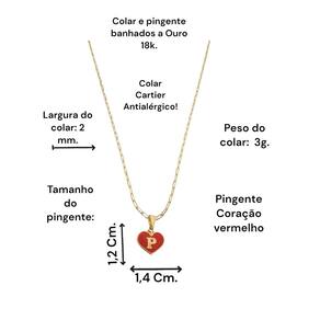 Colar feminino modelo Cartier com pingente Coração Vermelho letra inicial P banhado em Ouro 18k. Delicado e cheio de significado, este colar apresenta um pingente em forma de coração, personalizado com a letra inicial. O colar perfeito para quem deseja manter alguém especial sempre perto do coração. Ideal para presentear ou para adicionar um toque pessoal ao seu estilo diário. Este colar banhado a Ouro é mais que um acessório; é uma declaração de amor. Especificações: Colar Cartier com pingente Coração Vermelho letra inicia P banhados em Ouro 18k. Tamanho do colar: 50 cm. Peso do colar: 3 g. Espessura do colar: 2 mm. Fecho do colar: lagosta. Antialérgico. Tamanho do pingente: 1,4 x 1,2 cm. Pingente banhado a Ouro com aplique de resina branca. Instruções de uso e conservação: Nossas peças são de excelente qualidade. Para manter o brilho e a beleza da joia; por favor siga estas dicas: Evite o uso da joia durante o banho, ter atenção ao aplique de cremes ou perfumes sobre a joia, evitar banho de piscina e mar com a joia; limpe-as sempre com flanela adequada, guarde-as separadamente. Com estes cuidados básicos a joia manterá sempre a originalidade e qualidade. Acompanha linda caixinha de presentes. sobre defeitos de fabricação: 6 meses. Seguindo nossas orientações de uso no certificado de , a joia permanecerá conservada por longos anos ou até décadas Marca: Anaisa Semijoias
