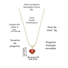 Colar feminino modelo Cartier com pingente Coração Vermelho letra inicial F banhado em Ouro 18k. Delicado e cheio de significado, este colar apresenta um pingente em forma de coração, personalizado com a letra inicial. O colar perfeito para quem deseja manter alguém especial sempre perto do coração. Ideal para presentear ou para adicionar um toque pessoal ao seu estilo diário. Este colar banhado a Ouro é mais que um acessório; é uma declaração de amor. Especificações: Colar Cartier com pingente Coração Vermelho letra inicia F banhados em Ouro 18k. Tamanho do colar: 60 cm. Peso do colar: 3 g. Espessura do colar: 2 mm. Fecho do colar: lagosta. Antialérgico. Tamanho do pingente: 1,4 x 1,2 cm. Pingente banhado a Ouro com aplique de resina branca. Instruções de uso e conservação: Nossas peças são de excelente qualidade. Para manter o brilho e a beleza da joia; por favor siga estas dicas: Evite o uso da joia durante o banho, ter atenção ao aplique de cremes ou perfumes sobre a joia, evitar banho de piscina e mar com a joia; limpe-as sempre com flanela adequada, guarde-as separadamente. Com estes cuidados básicos a joia manterá sempre a originalidade e qualidade. Acompanha linda caixinha de presentes. sobre defeitos de fabricação: 6 meses. Seguindo nossas orientações de uso no certificado de , a joia permanecerá conservada por longos anos ou até décadas Marca: Anaisa Semijoias