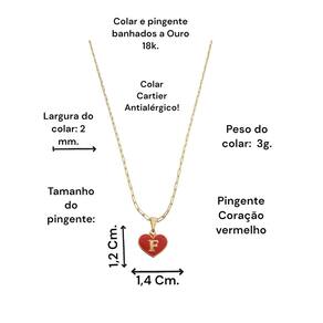 Colar Cartier 60Cm Coração Vermelho Letra F Banhado Ouro 18K