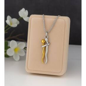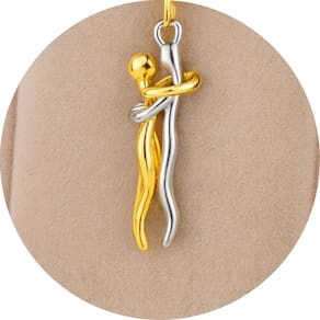 Colar Casal Magnético Prateado e Dourado com Pingente é a joia perfeita para simbolizar amor e união. O pingente traz duas figuras estilizadas se abraçando, em acabamento bicolor dourado e prata, que se atraem e se unem através de um ímã interno. Um acessório romântico e cheio de significado, ideal para casais apaixonados. Pode ser utilizado no dia a dia ou em ocasiões especiais, sendo também uma excelente opção de presente criativo e simbólico.