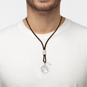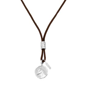 A VL acessoires traz em sua Coleção Agro esse símbolo de energia e força, por muitas vezes companheiro e amigo do homem em suas jornadas diárias. Um colar com riqueza de detalhes, composto por uma medalha de cavalo, um passante simbolizando uma tora de madeira, com revestimento prateado. Seu cordão em paracord na cor marrom café é extremamente reforçado e versátil, com fechamento por nó.