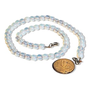 Colar Choker Bolinha 6mm Pedra Pedra da Lua Natural Rolada 40cm, Gargantilha com Bolinha Pedra Natural com furos MANUAIS ao meio da pedra, Fecho Lagostas Furos bem centrais, o fio é uma Linha de Nylon multifilamento